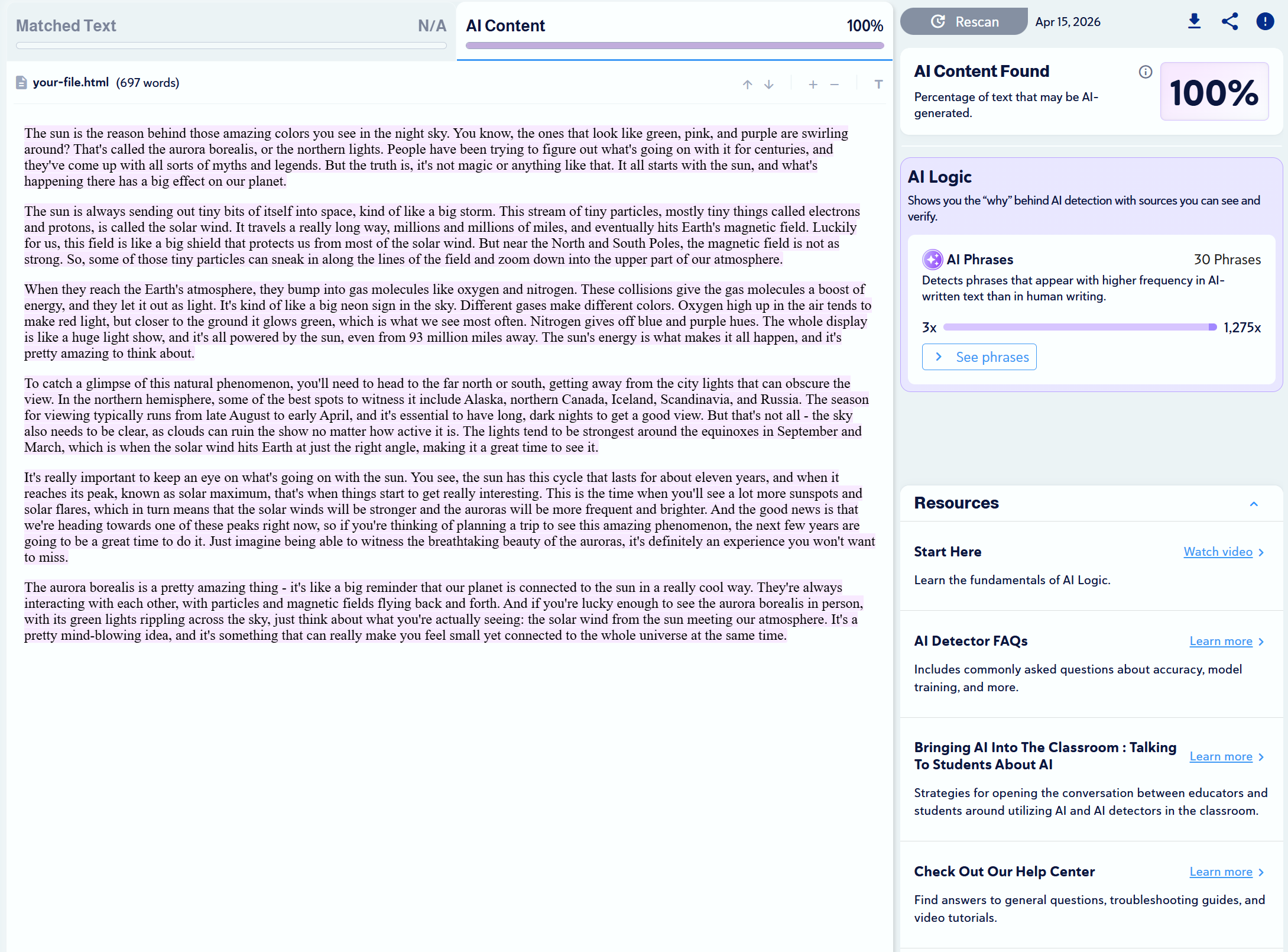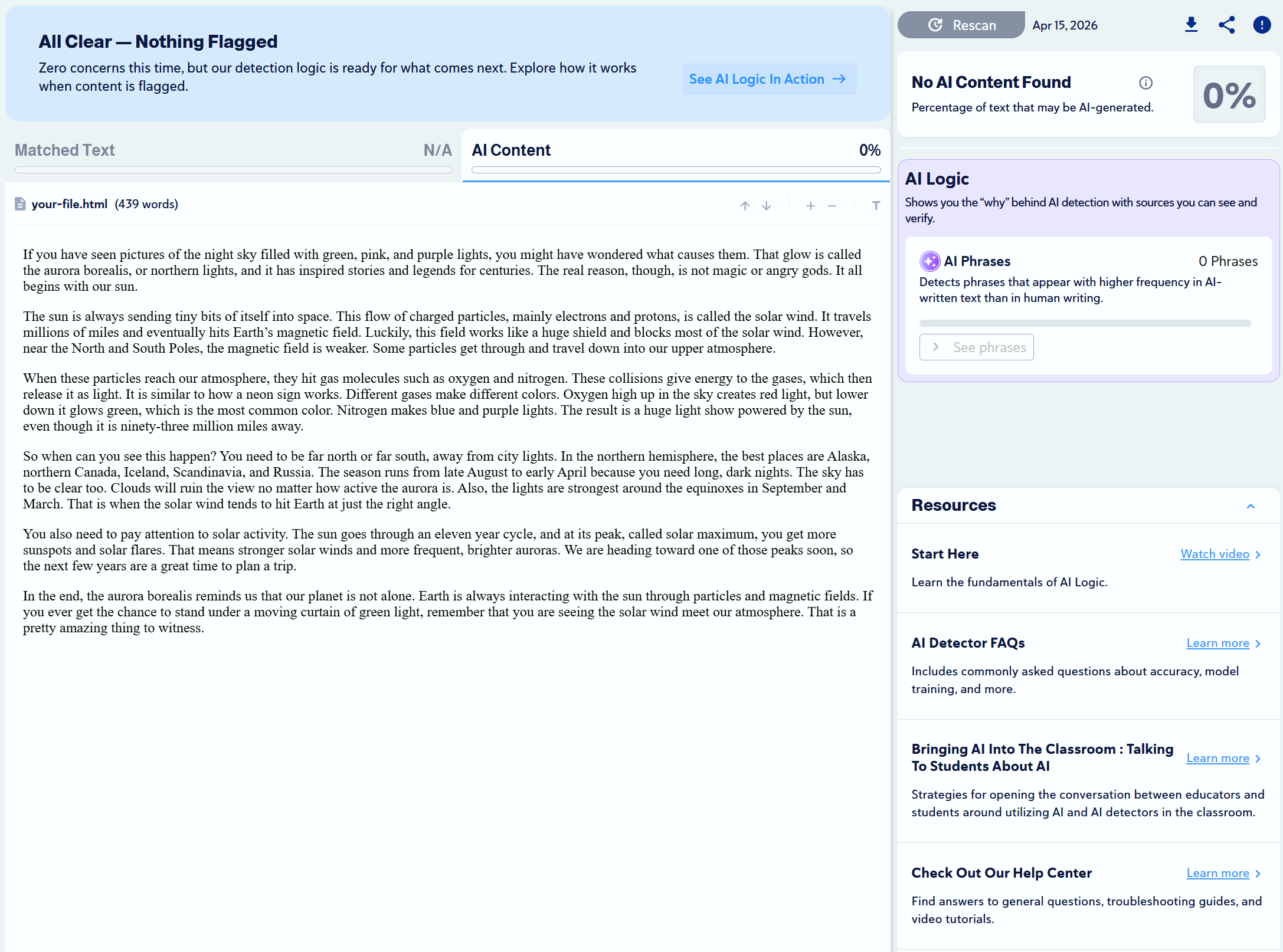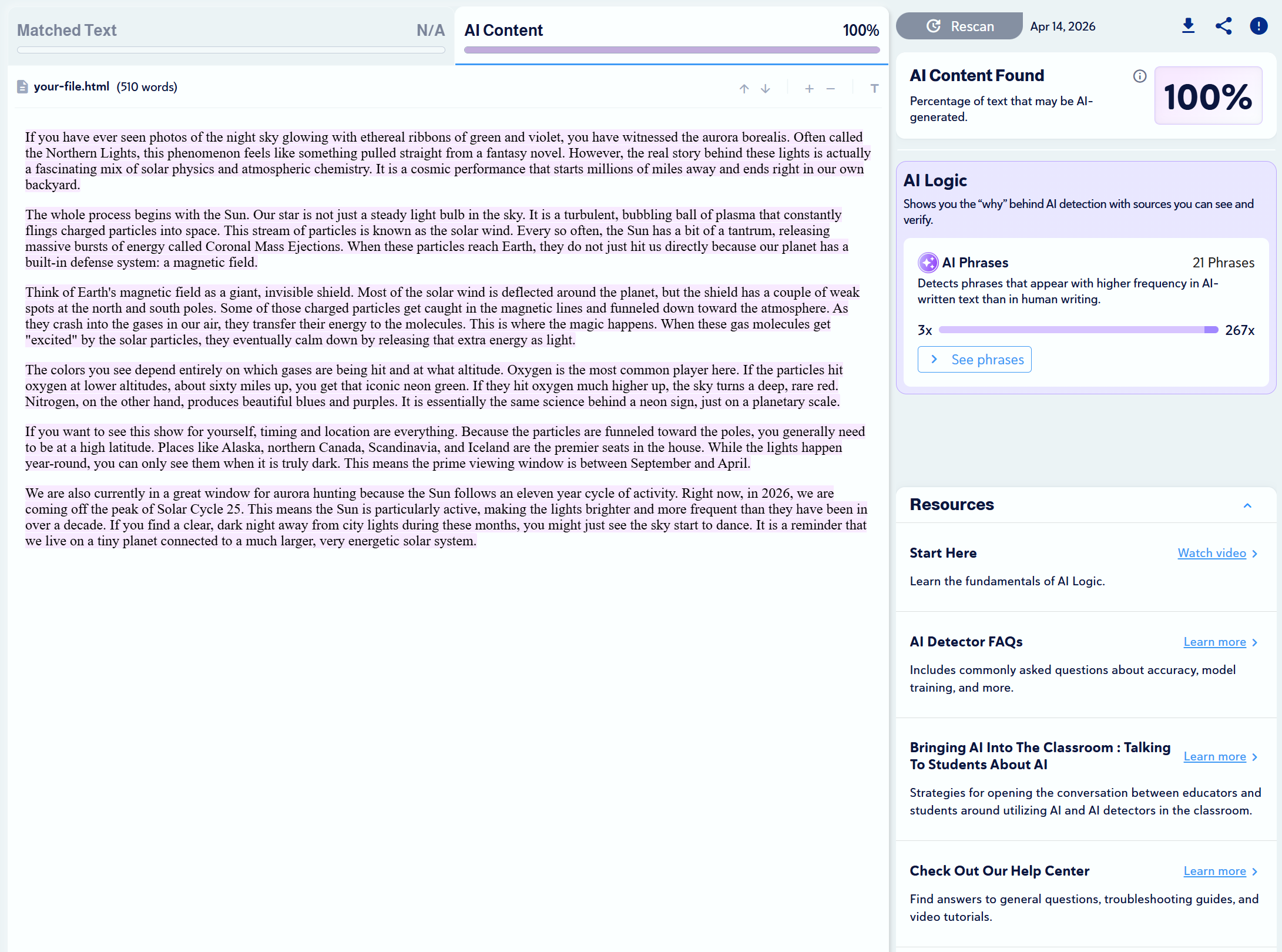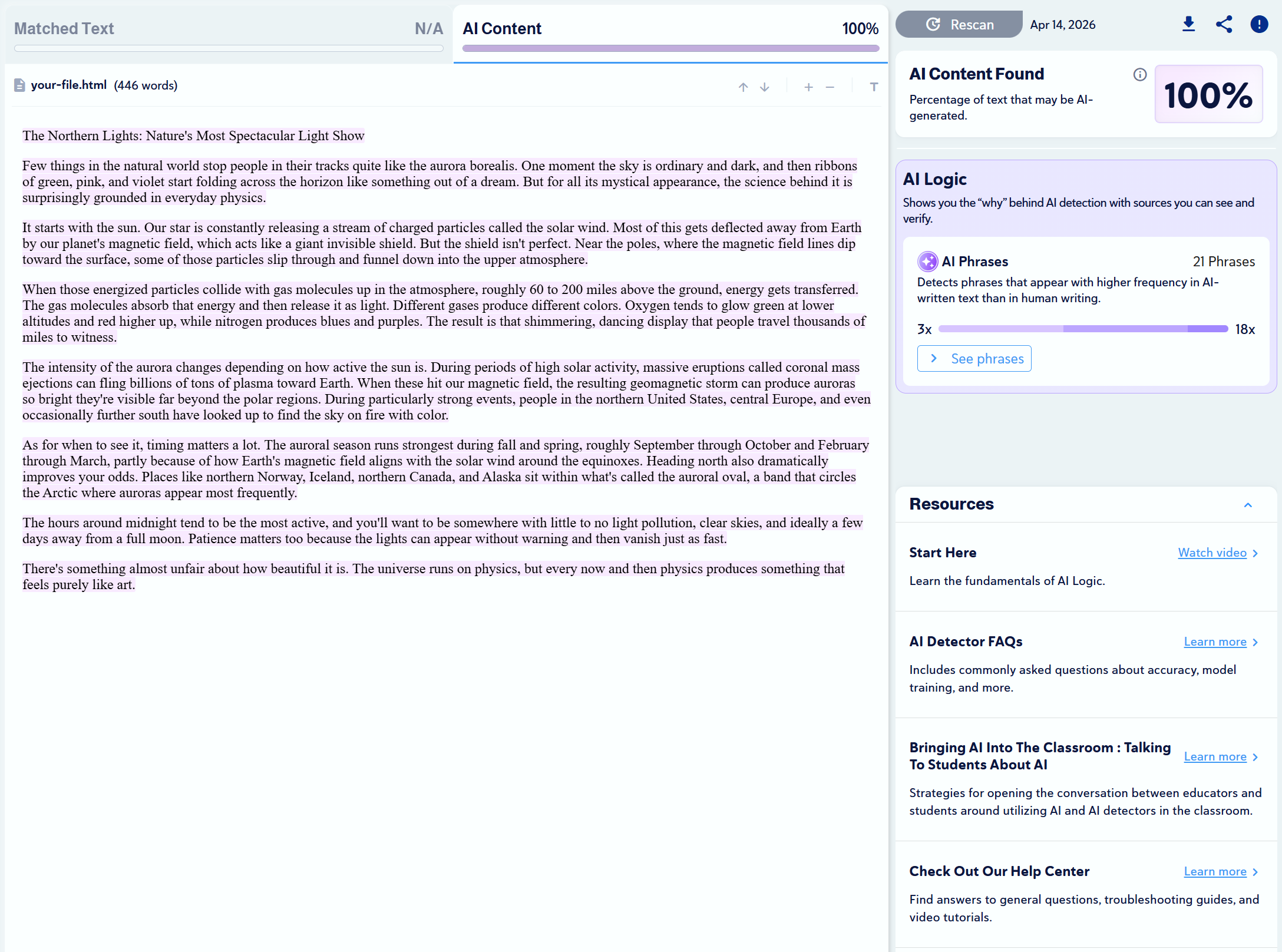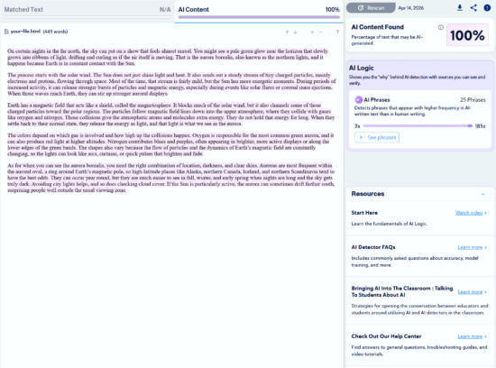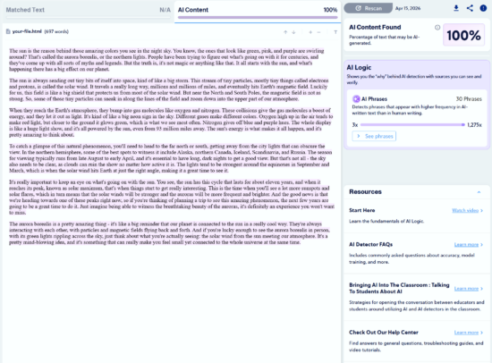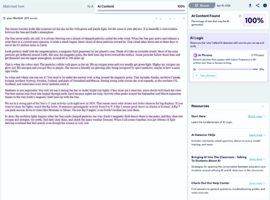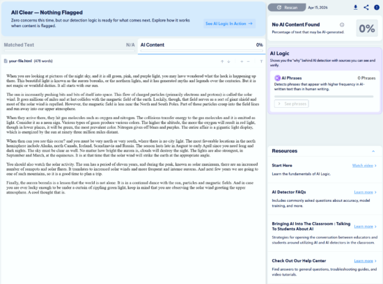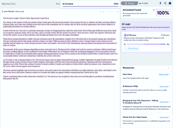 Note: Copyleaks provides three AI detection sensitivity levels. We used Level 1 for our tests, as it targets unedited content copied directly from an LLM.