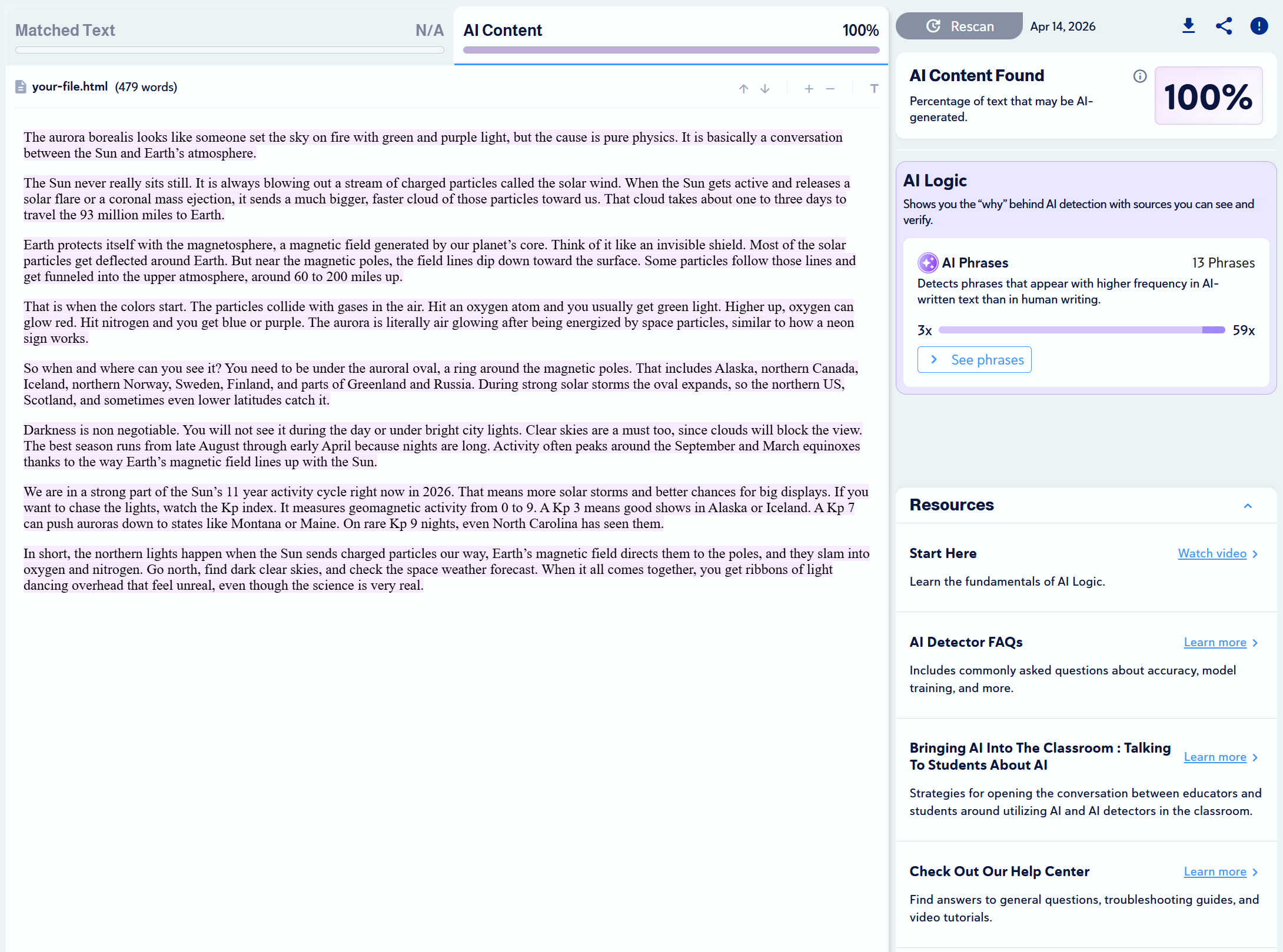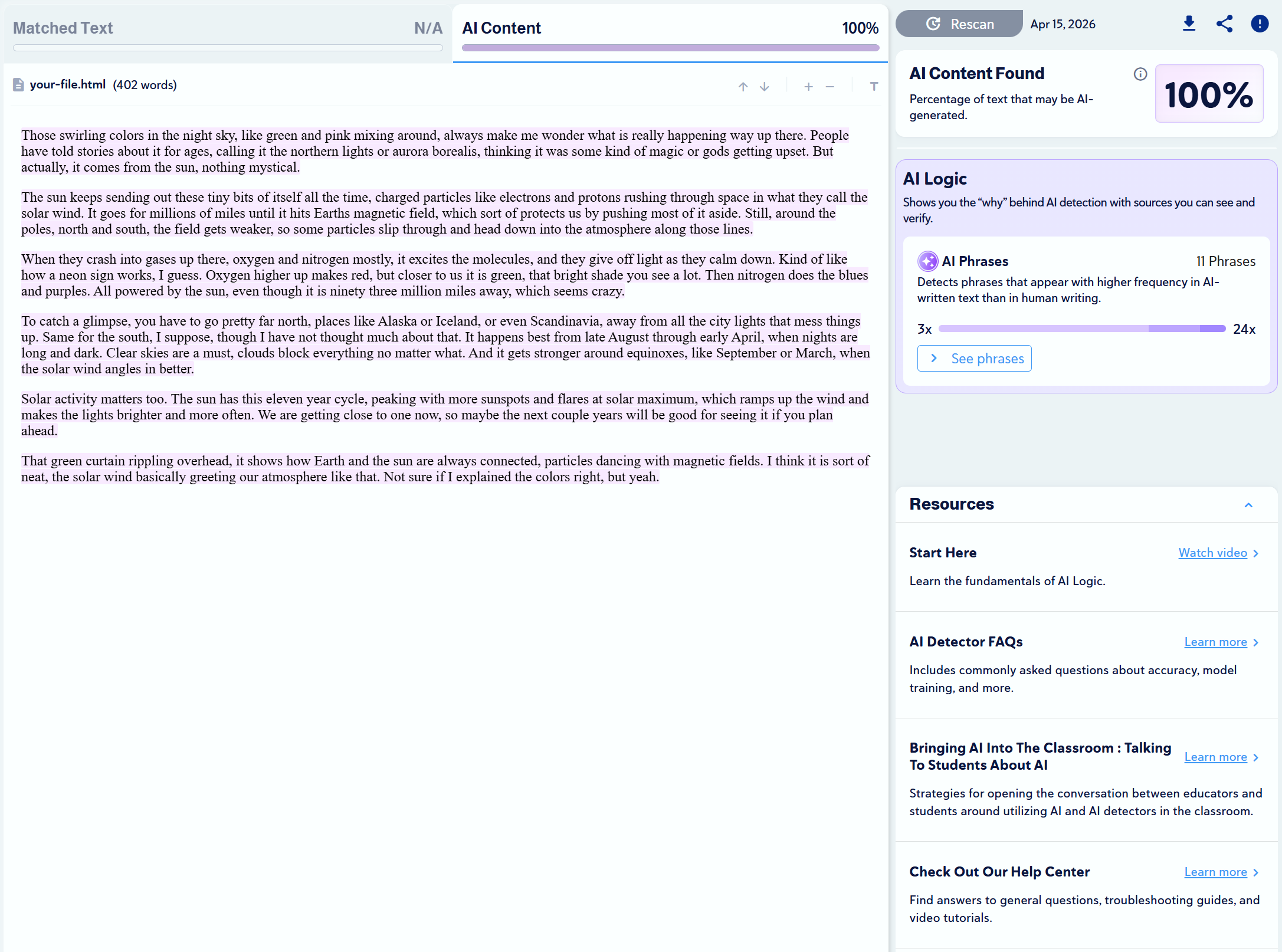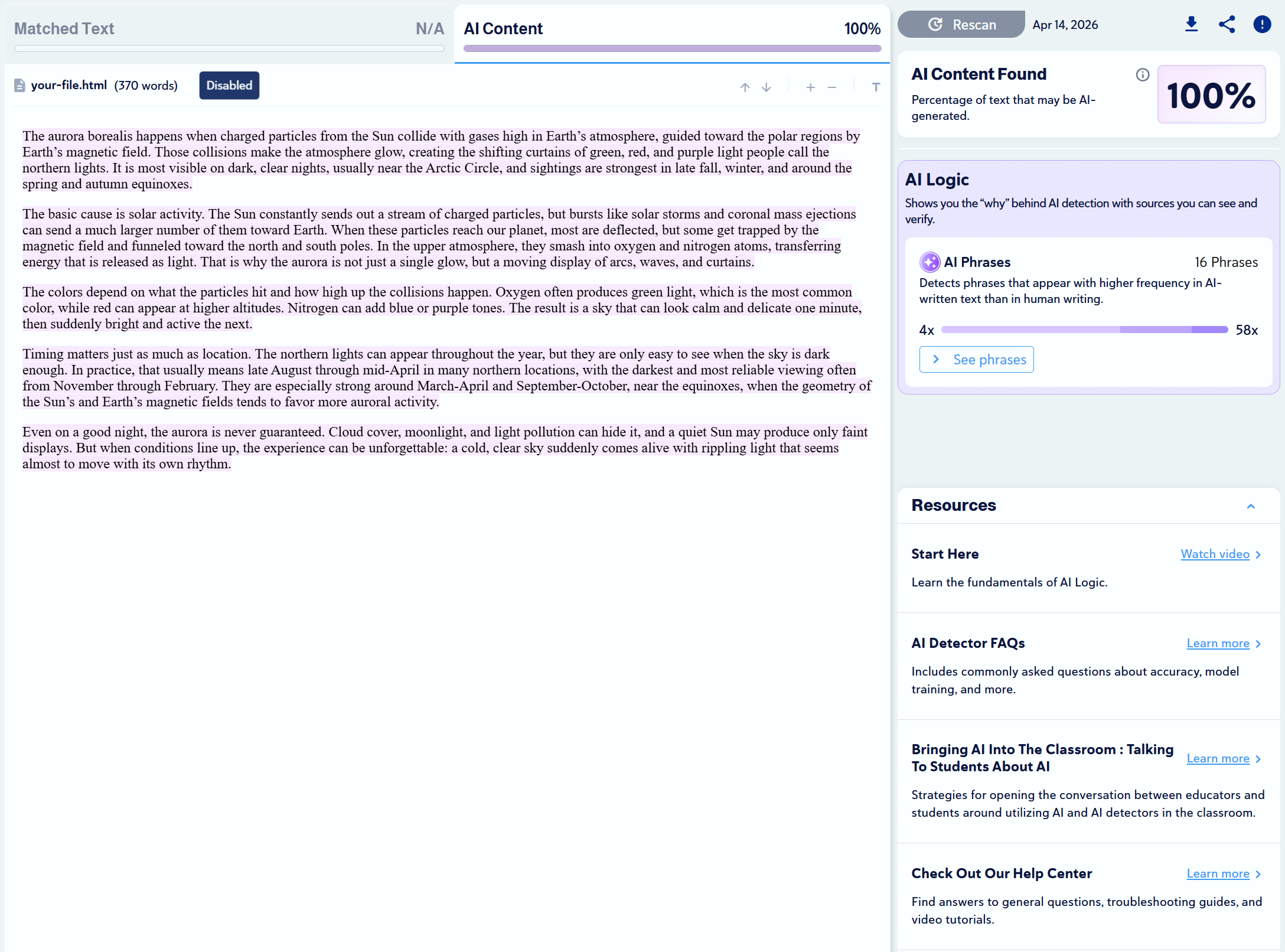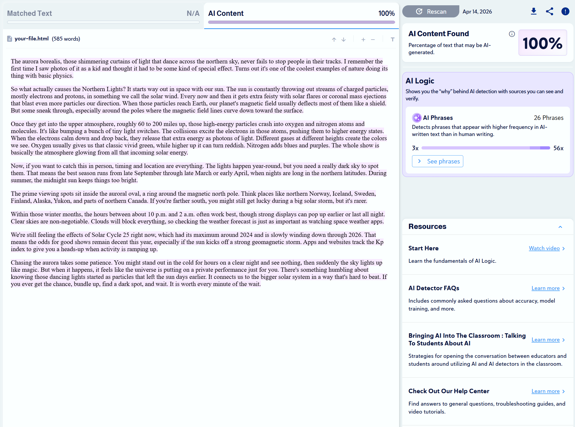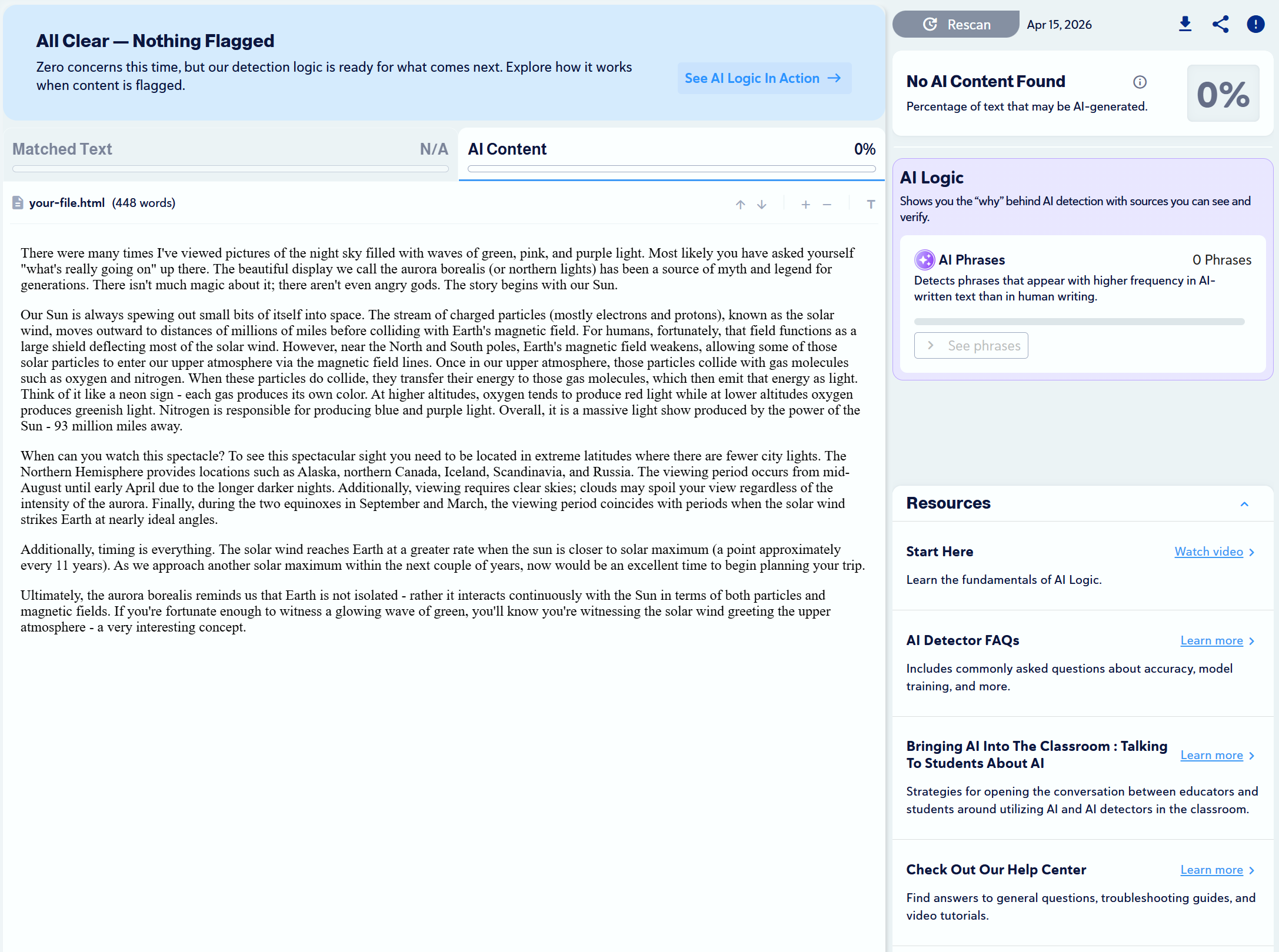 Note: Copyleaks provides three AI detection sensitivity levels. We used Level 1 for our tests, as it targets unedited content copied directly from an LLM.