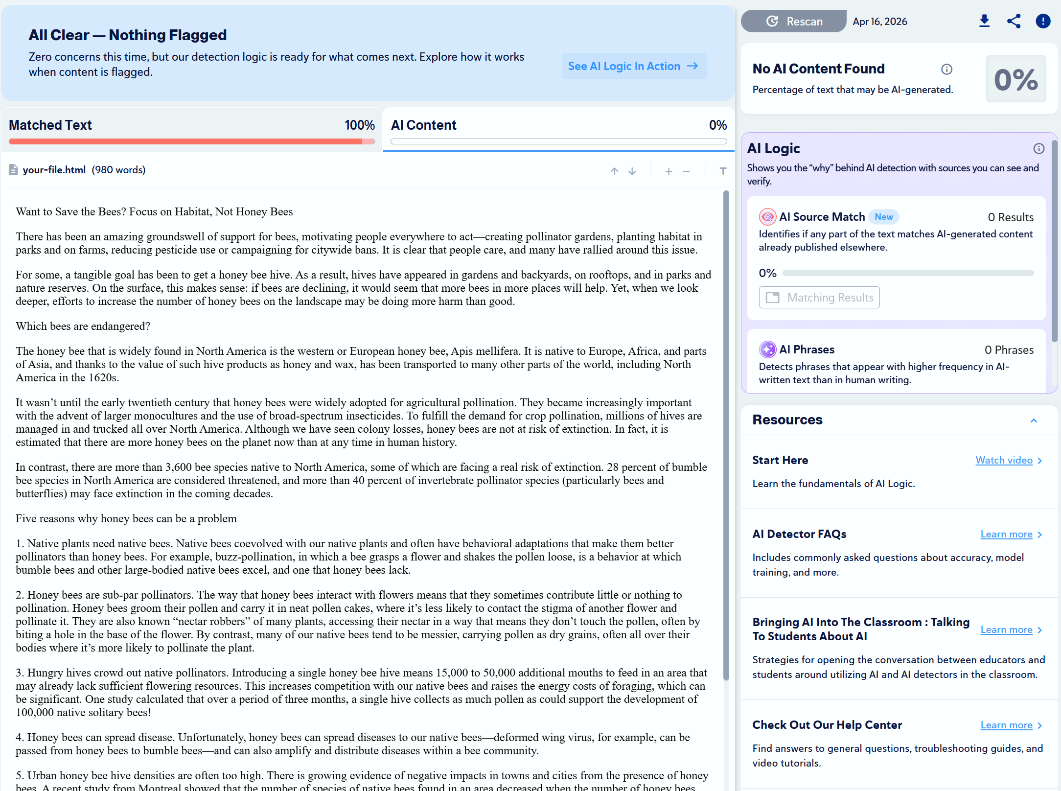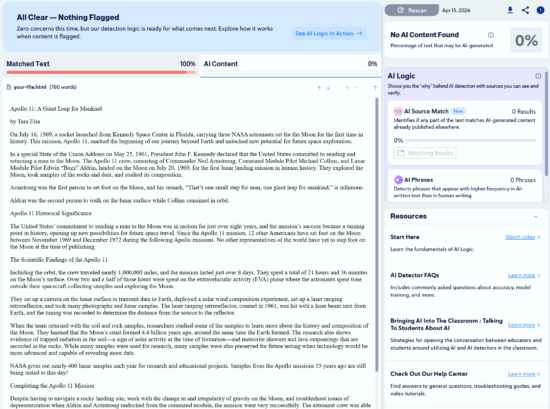 - No false positives for human content.