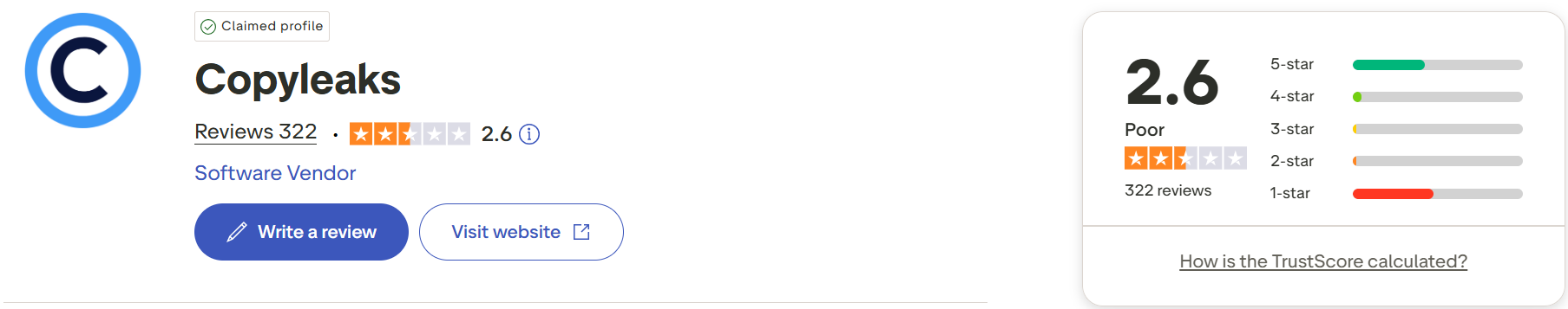 Copyleaks is generally poorly reviewed on Trustpilot, as 48% of its reviews are rated 1 star.