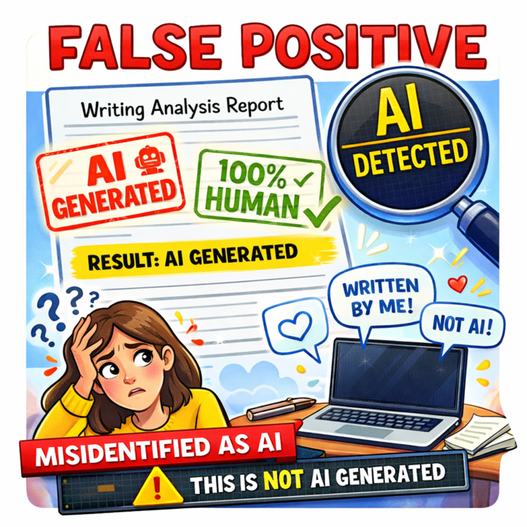 A false positive is when a detector flags content as “AI” when it was actually written by a human. This occurs when human-written content reflects the predictable word choices LLMs use when generating text.