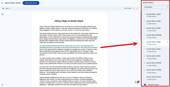 For academic writing, reviewing the “version history” is growing in popularity as the most common way to detect AI-writing from students (see also the Revisions History Google Extension).[8]