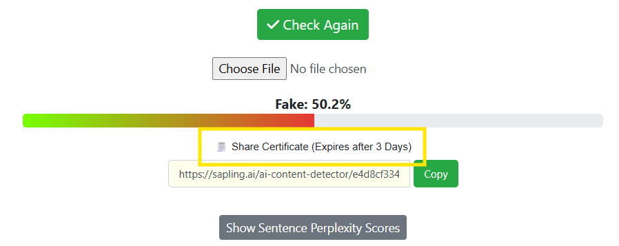 Yes, Sapling’s “Share Certificate” link is both the report and certification, which expires after three days.