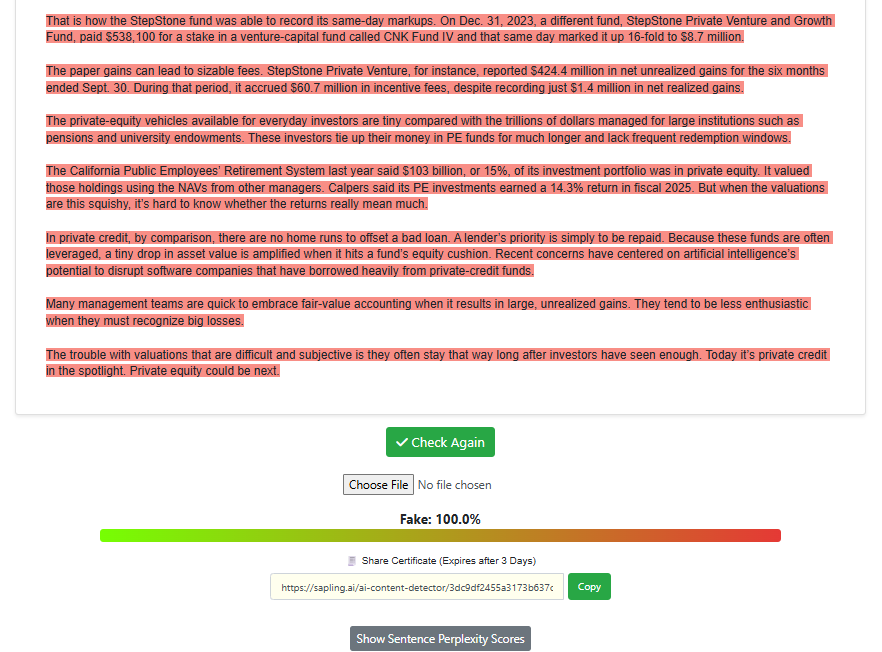 Test #1: Sapling.ai vs. AI-Generated Content