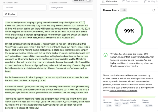 | WaitbutWhy.com | 100% human | ![]() |